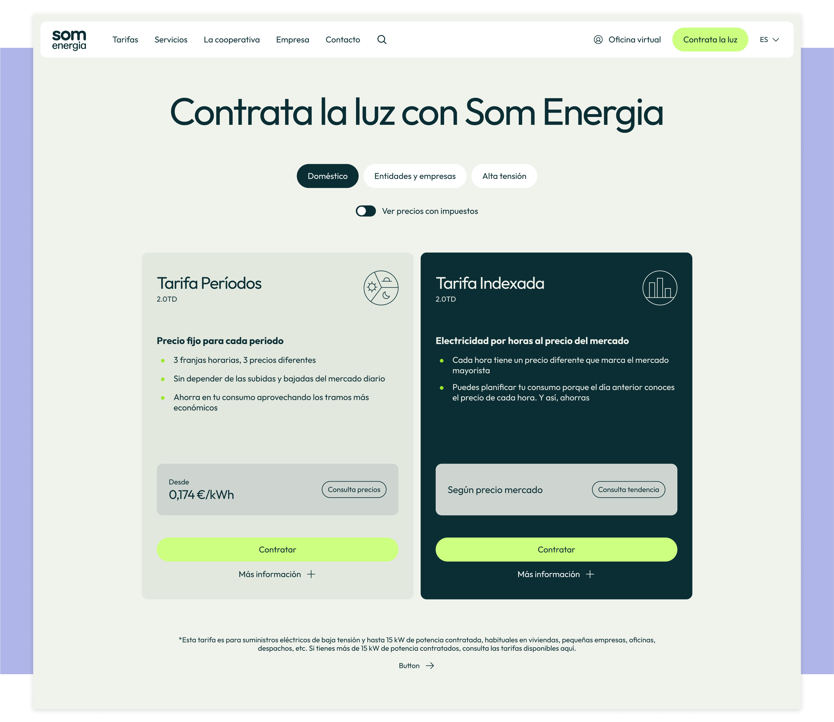 La web de Som Energia es clave en la captación de clientes. Es el canal a través del cual los usuarios consultan tarifas y descubren la gran diversidad de servicios que ofrece la cooperativa —más allá de la contratación de la luz—, así como el lugar donde formalizan sus altas. Una mala usabilidad tendría, por tanto, un impacto directo y muy negativo en la captación de nuevos socios y en los ingresos de la organización. Todo un reto… ¡y de los que más nos gustan!
